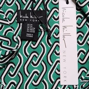 Dress knee length V-neck with tie short sleeves Size 2X NICOLE MILLER NWT