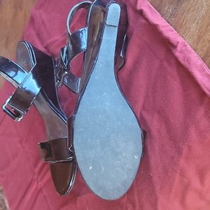 Nice patent leather sandal, can be casual or dress. The low profile wedge heel makes them easy to walk in. Sized a bit small, fits 8/8.5.