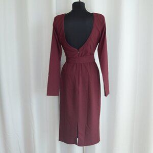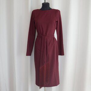 Dress the Population Caro Burgundy Long Sleeve Belted Sheath Dress Sz M