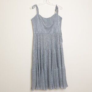 Dress the Population Dream Metallic Tiered Midi Dress Silver Gray