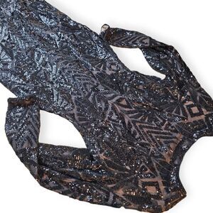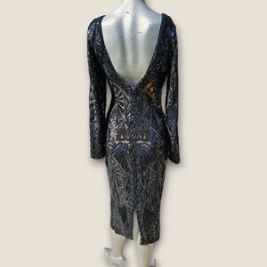 Dress the Population Emery Long Sleeve Black Sequin Cocktail Dress