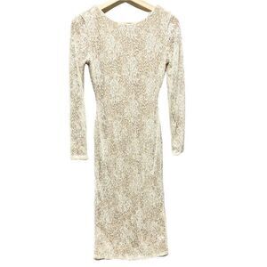 Dress the Population Susanna Dress Long Sleeve Stretch Sequin Midi Shift
