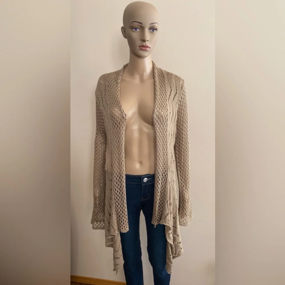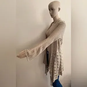 Beige Crocheted Cardigan. Open Front. Long Sleeve.