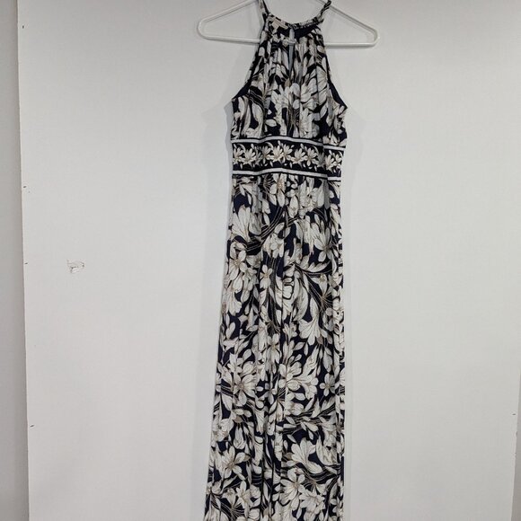 Dressbarn Floral Halter Maxi Bress Navy Blue White