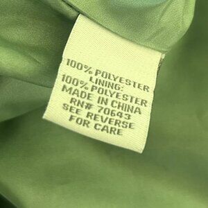 Dressbarn sheath dress. Green and brown floral with ribbon belt tie. Fabric has a satiny finish. Lined. Zip back.