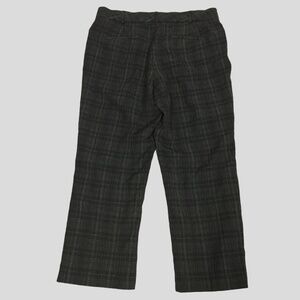 Dressbarn dress pants/ slacks. Women's Tag Size 14W. Poly, rayon, spandex blend. Dark grey / gray plaid. Button, double hook and zip closure. Rear darts. False rear pockets. Discreet front pockets. Office attire / business work wear. Straight leg, relaxed fit with wide cuffs that would work with shoes or boots.