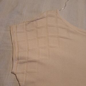 Dressbarn Roz & Ali women's XL Cream with lace accent knit top, shoulders have pretty diamond design in the knit, the lace on the back is chiffon lined, Career line top, New