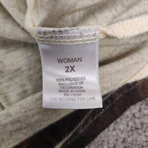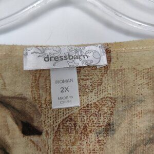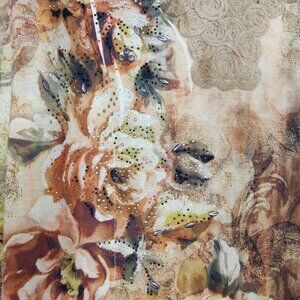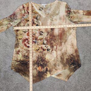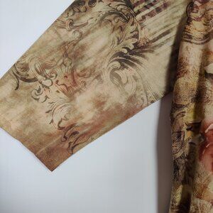 Dressbarn Women's Blouse Size 2X Beige Flowered Jeweled Cord Embroidery Y2K Chic