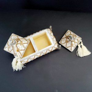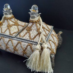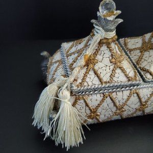 Dresser Top Trinket Chest w/ Finial Lids Footed Tassels Hand Painted Crackled