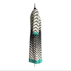 STUDIO ONE NEW YORK Sheath Dress Black Dots Teal Trim 3/4 sleeve LINED