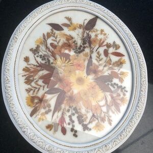Dried floral tray glass front and ornate frame. Items shown not included. 12” acrossx 17” talk.