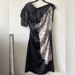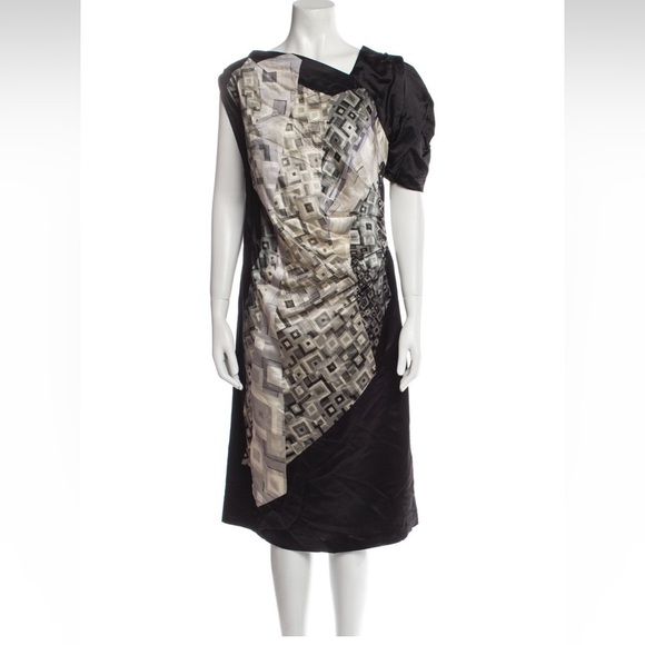 Dries Van Noten Aysmmetrical Sleeve Geometric Design Silk-Wool Dress Size 40/ 4