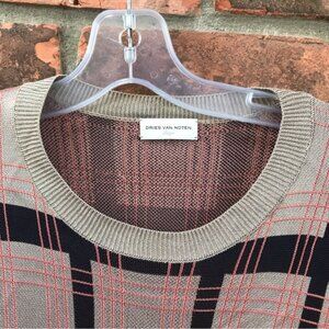 Dries Van Noten Check Print Knit Pullover Crew Sweater Preppy Top Short Sleeve L