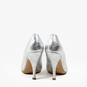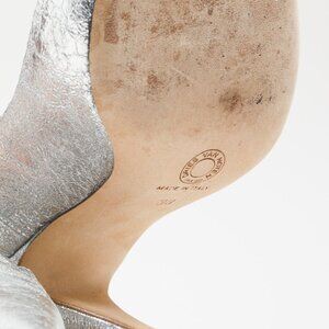 This shiny pair of heels from Dries Van Noten sports a distressed silver leather upper, nude leather insole, and tan leather outsole, all wrapped in a pointed-toe silhouette that oozes style.