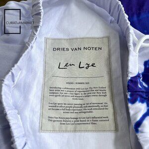 Lightweight, unlined, and tailored with a relaxed fit, they embody Dries’ signature tension: escapism grounded in structure. Every step you take animates the print — a wearable homage to Lye’s obsession with rhythm, energy, and the art of movement.