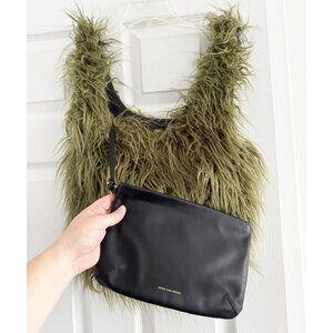 A stunning accessory from the Fall 2024 runway collection - it adds so much texture to an outfit! Made from plush faux-fur for a soft and luxurious feel. Features a fully lined leather interior for added durability. Includes a removable pouch to keep your valuables (lipstick/keys etc) from flopping around on the inside.