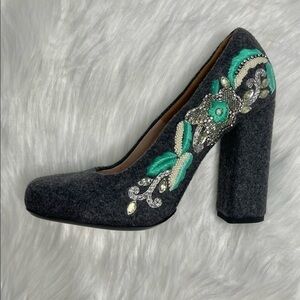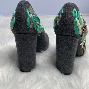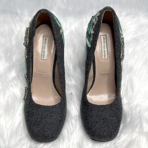 Dries Van Noten Gray Wool Beaded Crystal Embellished Pumps
