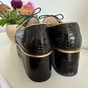 Dries Van Noten black & gold platform leather Oxford shoes - size 39 / US 8