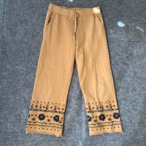 Driftwood Tan Floral Embroidered Lounge Pants | Boho Cotton Size Small