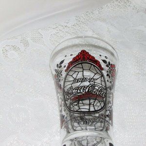 Drink COCA COLA Soda Fountain Beverage Glass Flared Retro Red Black Graphics