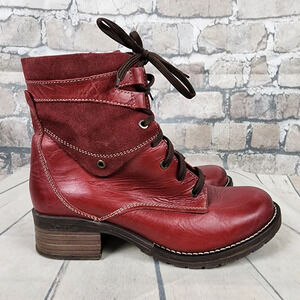 Dromedaris Kara Lace Up Red Leather Ankle Boots Size 41 Suede Accents