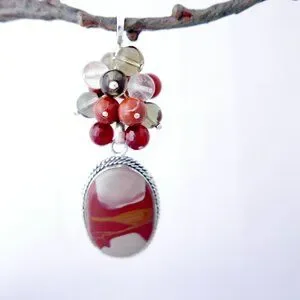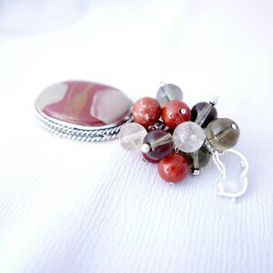 Oval Jasper focal pendant, in colors of burnt orange, taupe and light brown is set in Sterling Silver.
