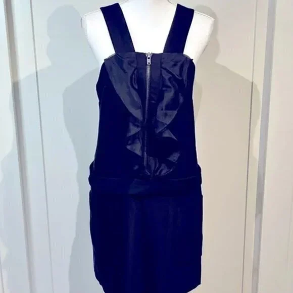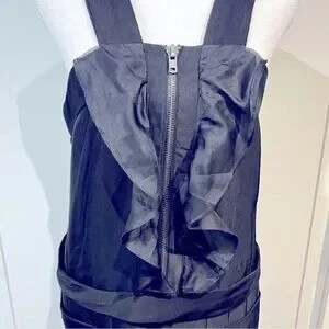 Drop Waist Ruffle Front Chunky Zip Mini Dress
