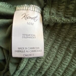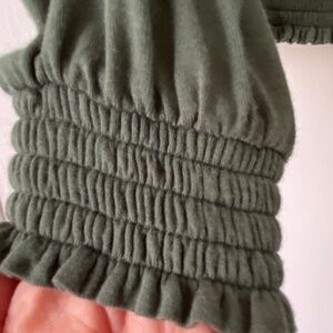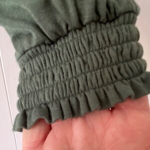 Drop sleeve green Kismet pullover top with elastic cuffs and waist size medium