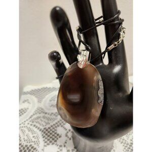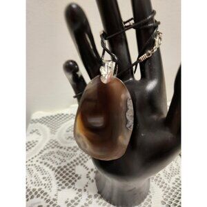 Stunning Druzy Agate Pendant Necklace, featuring a one-of-a-kind natural polished agate crystal slice wit faux silver bail on an 18 inch black rope. Ideal for him or her!!