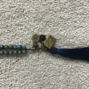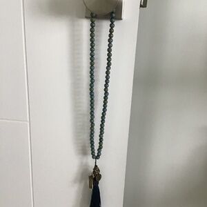 6mm beads of Blue/Gold Druzy Metallic Agate Stones with navy tassel.