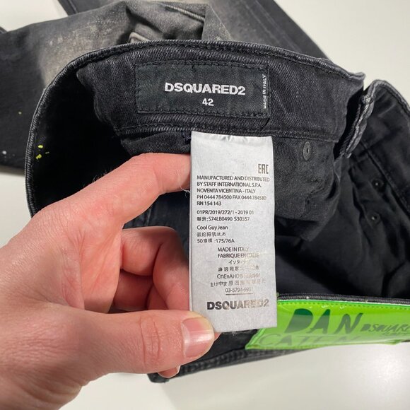 Dsquared2 Dan Caten Distressed Paint Splatter Cool Guy Jeans Black Men's 31x32