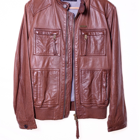 Gently used Dsquared2 Men's light brown Leather Biker Jacket for sale. Scuff Mark on the left arm as per pictures. Rest of the leather jacket normal wear. Haven't been worn more than 15-20 times.