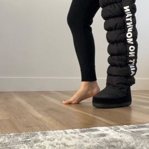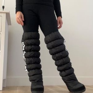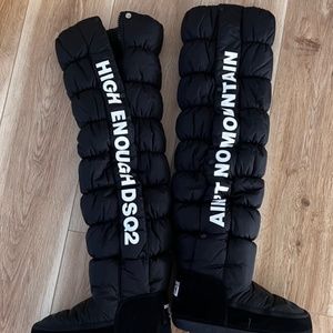 Black nylon/leather Ain't No Mountain boots from DSQUARED2 featuring round toe, faux fur detail, logo patch to the rear, padded design, side button and zip fastening and rubber sole.