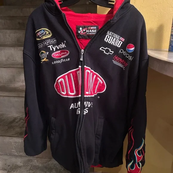 DuPont racing hoodie with racing patches. Used condition, size L fits more like XL.