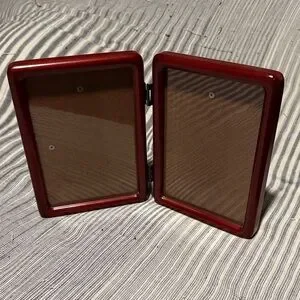 Elegant dual frame display case in a rich red finish. Perfect for showcasing your cherished items with style.