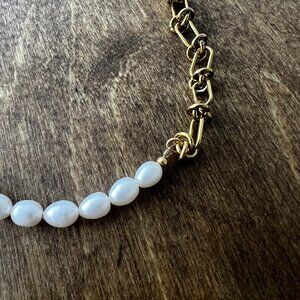 Duality Gold Plated and Pearl Clavicle Length Necklace