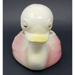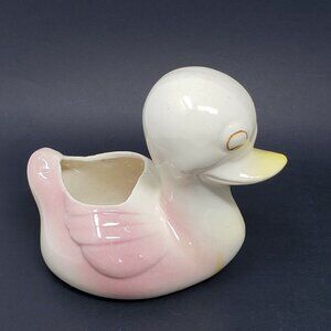 Duck Ceramic Planter Cacti Succulent Plant Pot 5 in Vintage Yellow Pink White