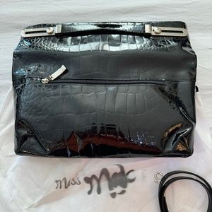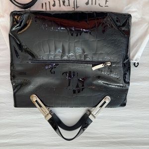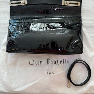 Due Fratelli Alligator leather clutch. Patent Leather evening Bag.