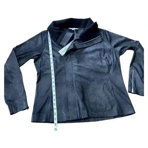 Light weight Italian-style biker jacket made from extremely soft vegan sueded leather. Luxurious double layer collar. Asymmetric zip front, easy pockets, zipper cuffs. Smooth and light weight to make layering easy. New 🏷️ / 🚭