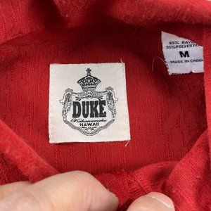 Duke KAHANAMOKU Hawaiian Shirt Men Medium M Red Button Up Rayon Polyester Blend