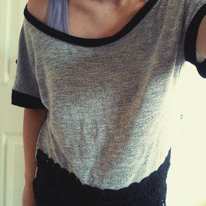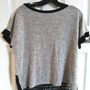 Lightweight knit top, soft and comfortable fabric. Great on its own or layer on top of tank tops. Crochet detail. Size s. Measures 54cm across chest under arms and 55cm is the length of the shirt. Polyester and Rayon blend.
