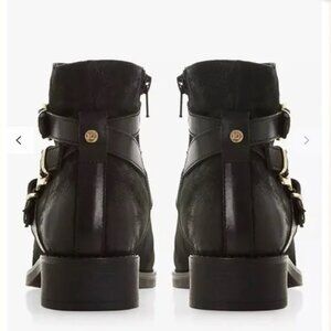 Dune London Black Suede Boots with Gold Buckles - Size 9.5