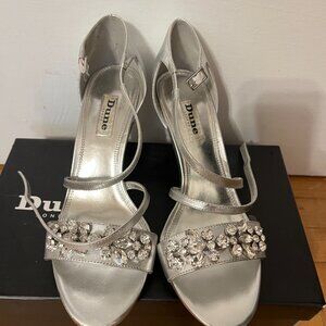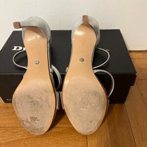 Dune London Silver Leather Strappy Heels | Size 39 | Rhinestone Glam Sandals