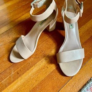 A summer sandal, block heel. Size 10 (equivalent of a EUR 41, UK 8). Only worn a few times - see pictures for sole of foot which had some marks, otherwise good condition. These are a light pink/blush colour so are a good option for the spring/summer.