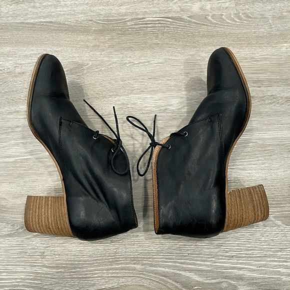 Dune Women's Black Leather Block Heel Lace-Up Ankle Boots Size 39EU 8.5 US