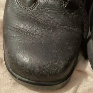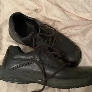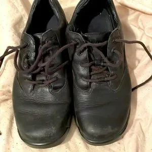 Good quality Black leather Dunham walking shoes. Slight wear on the toe but will easily polish up.