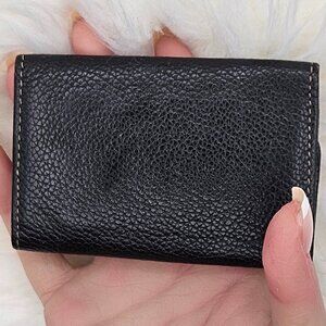 Crafted from high-quality black pebbled leather, this sleek key holder features gold-toned hardware and six key rings. It also includes small compartments perfect for holding folded bills or cards.