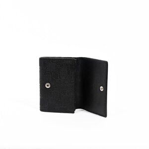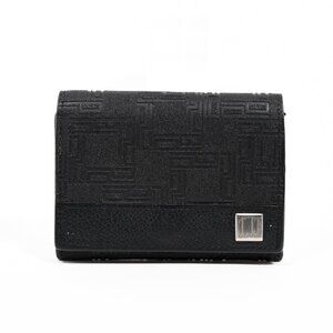 This Dunhill credit card holder and purse is crafted from durable PVC leather in black with silver-tone detailing. It features a flap-over snap button closure, a compact bifold design, and multiple compartments for cards and essentials. Lightly used and well maintained, this piece is in very good condition with only minimal signs of wear.