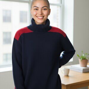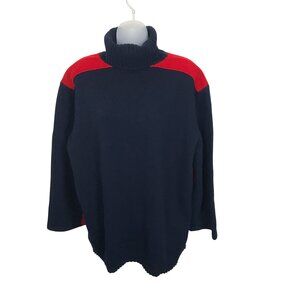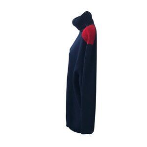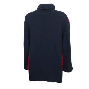 Dunhill Navy Blue And Red Stripe On The Shoulders And Runs Along The Underside Of Both Arms Turtle Neck Sweater 100% Merino Wool Size XL