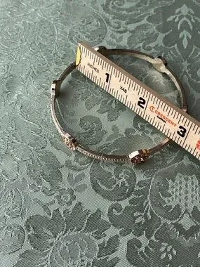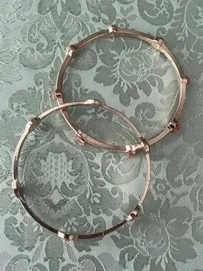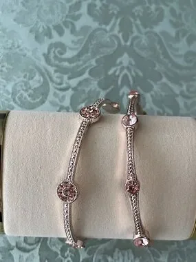 Bangle 2: Features an etched-style band with multiple "bubble" rose-gold rhinestone stations in a flower-like setting.